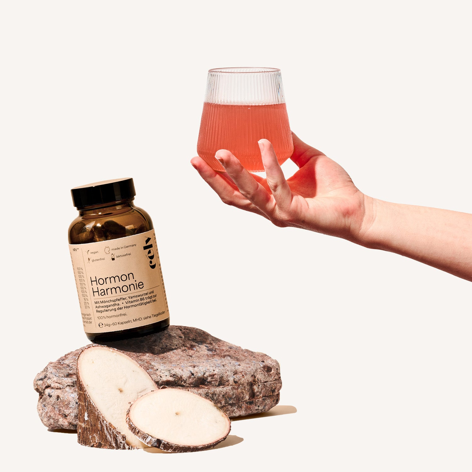 Unsere Hormon Harmonie Kapseln und die leckere Darmkur lassen sich leicht in deinen Alltag integrieren – mit nur zwei Kapseln am Tag und einem Getränk am Morgen.